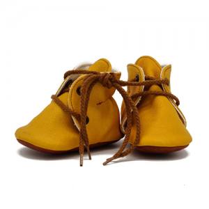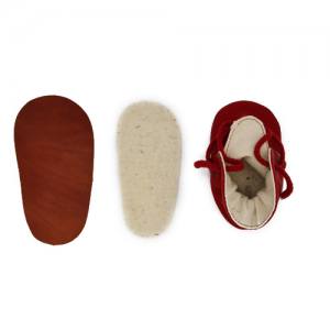 Canna - Kleinkinderschuhe, aus weichem Ziegenleder. Durch die flexible Laufsohle aus Rindleder, einen guten Sitz und der Wollfilzeinlage eignen sich die Schuhe ideal für Laufanfänger. Der Wollfilz dämpft den Auftritt und wärmt angenehm die Füsse ohne zu schwitzen. Die kleinen Füße sind gut geschützt und erhalten gleichzeitig durch die flexiblen Schnürung und die damit verbundene weite Öffnung genügend Bewegungsfreiheit; ein Barfuß-Laufgefühl entsteht.